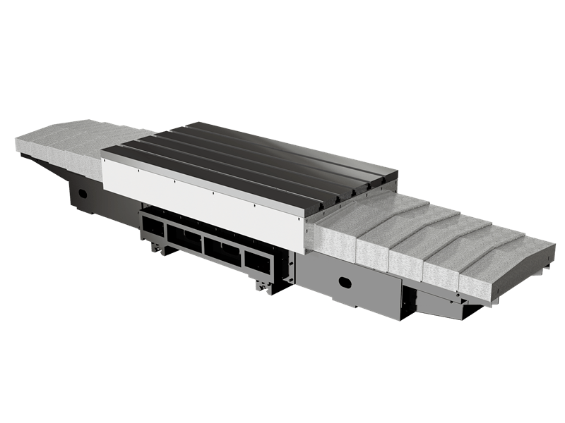 橫向滑臺及工作臺均為灰鑄鐵鑄造。橫向滑臺采用超大跨距的結構設計,有效增加機床穩(wěn)定性。